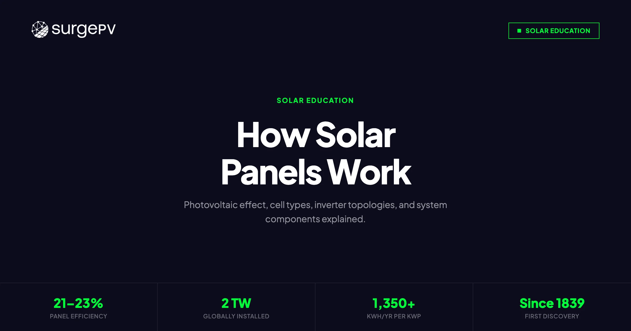 In 1839, Edmond Becquerel noticed that certain materials produced a small electrical current when exposed to light. He had no idea he was describing the operating principle for what would become the largest source of new electricity generation on Earth. By 2026, solar photovoltaic systems have surpassed 2 terawatts of installed capacity globally — more than all nuclear power plants combined — and the physics behind every single panel is still fundamentally the same quantum-mechanical event Becquerel stumbled onto in a Paris laboratory.