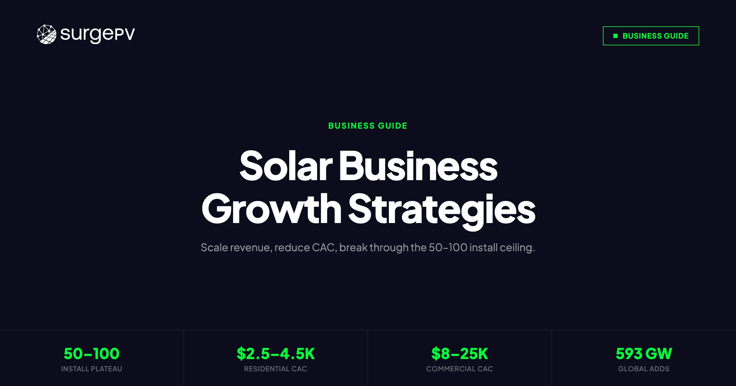 Most solar installers hit a ceiling somewhere between 50 and 100 installs a year. The business feels busy — phones ringing, crews booked, quotes going out — yet revenue growth flatlines. Margins thin. The owner still quotes every job personally. A second salesperson gets hired and somehow doesn’t move the needle.