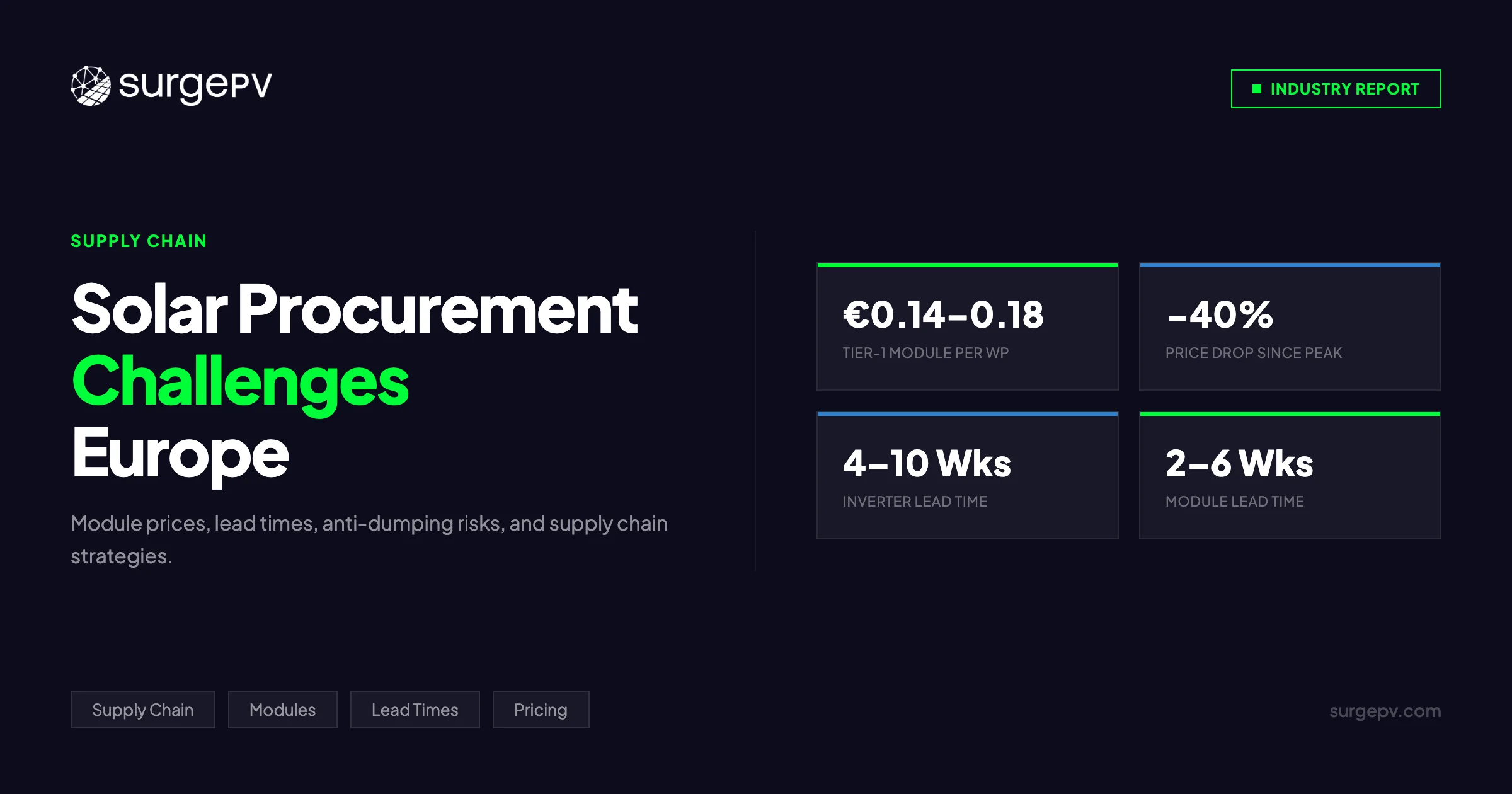 - Latest 2026 European solar supply chain data — module price table, lead times by category