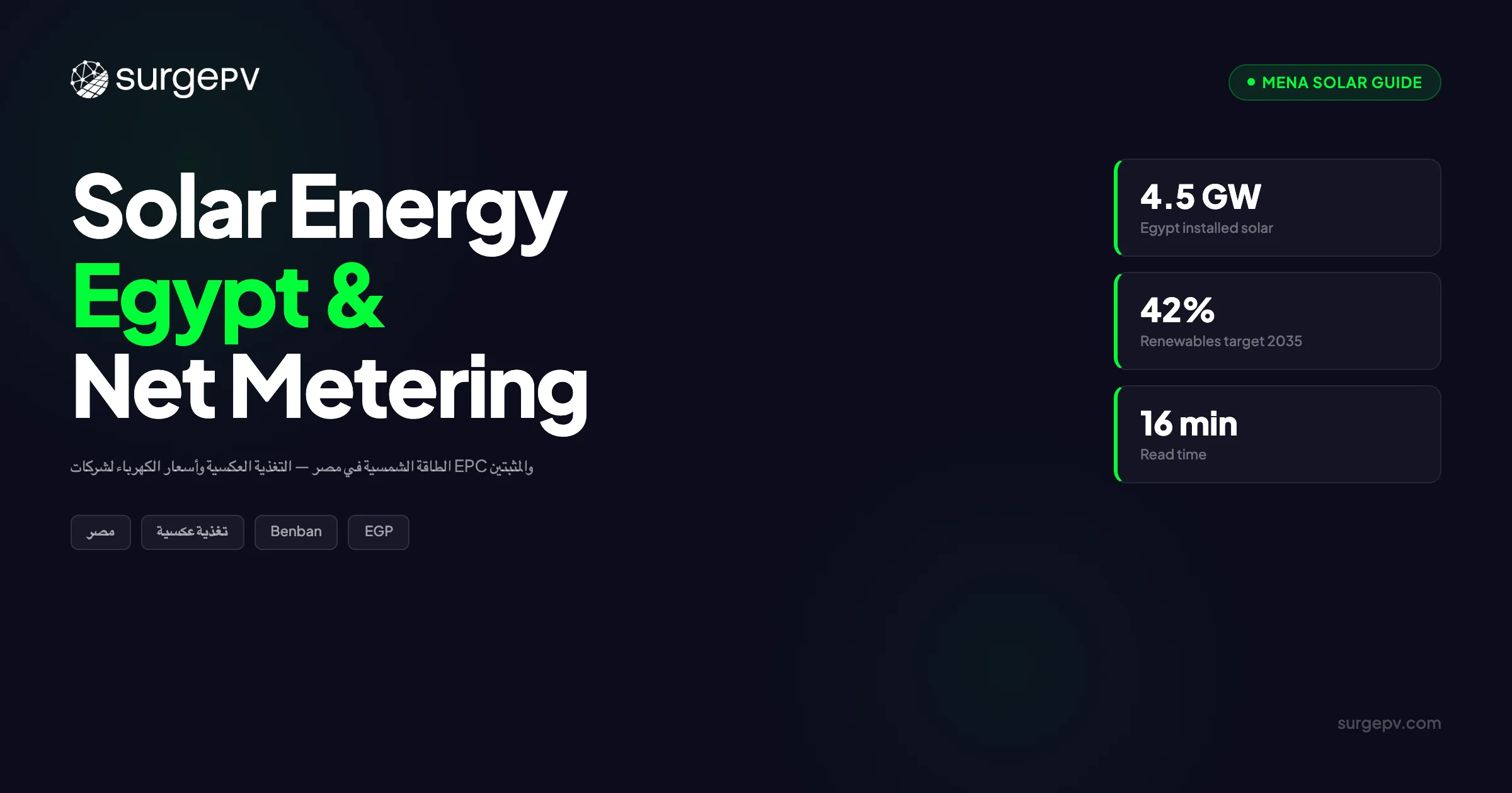 هذا الدليل مكتوب للمثبت المصري، ومدير المشتريات في شركة EPC، وصاحب المبنى التجاري الذي يسأل عن الجدوى الفعلية. يغطي: كيف يعمل نظام التغذية العكسية في مصر بدقة تشغيلية، والأسعار الحالية للكهرباء التجارية والحسابات الفعلية للعائد، والإطار التنظيمي لشركة EgyptERA وشركة قابضة لكهرباء مصر، وخيارات التمويل المتاحة، وأين تكمن الفرص الأكبر في السوق المصري اليوم.