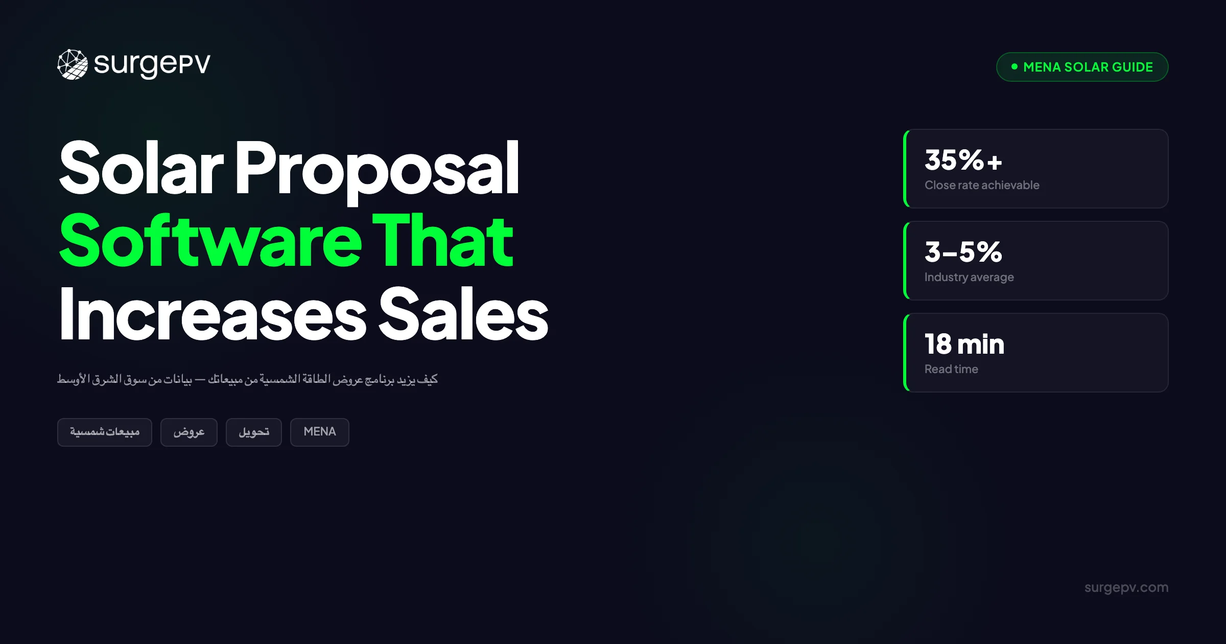 يعكس هذا المقال البيانات المتاحة حتى الربع الأول من 2026. ظروف سوق الطاقة الشمسية وهياكل الحوافز ومعايير معدل الإغلاق تتغير بشكل منتظم. للاطلاع على قدرات منصة SurgePV الحالية والأسعار، تفضل بزيارة surgepv.com.