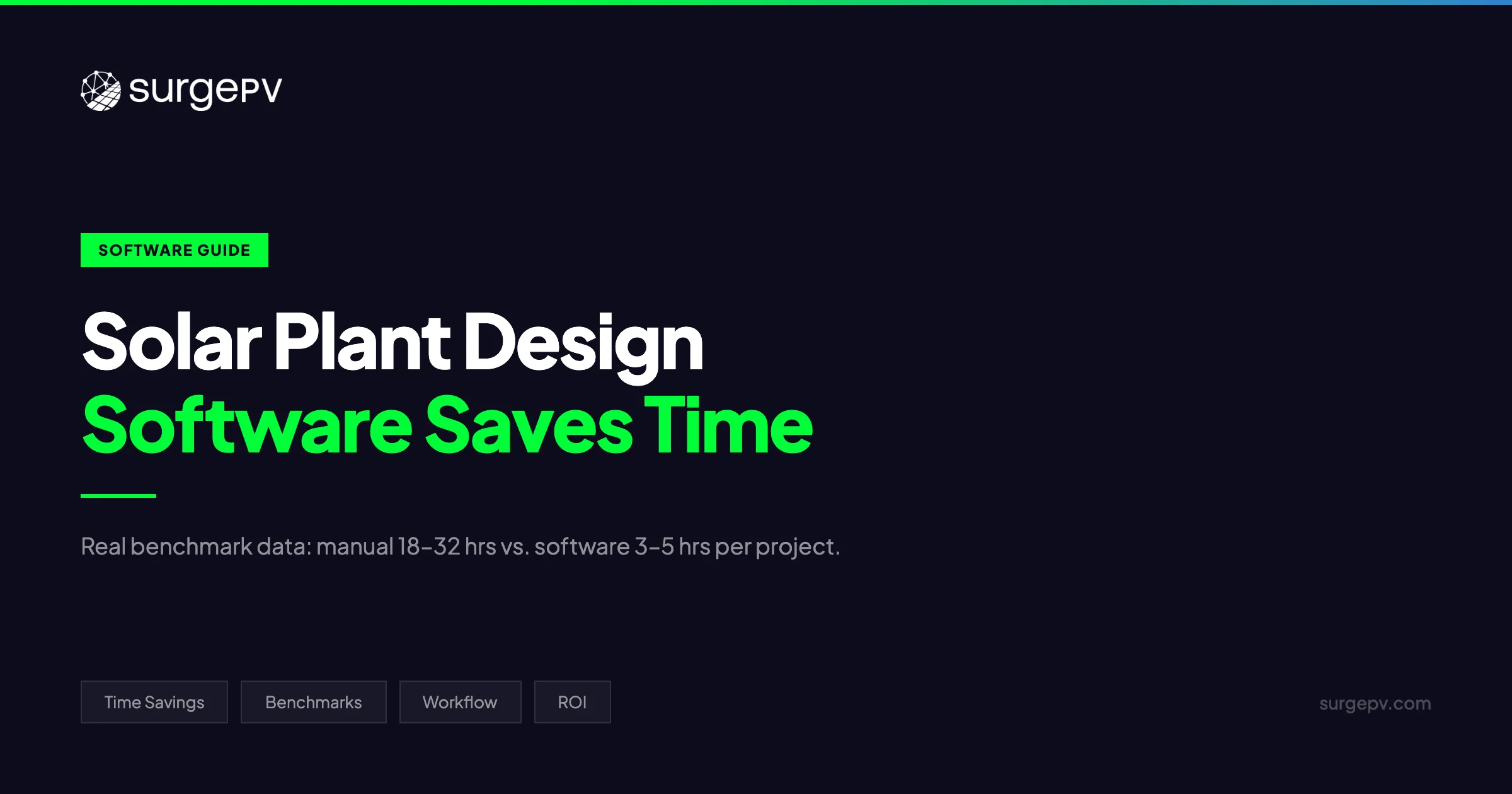 For this 25 kWp commercial example, total workflow time in SurgePV: approximately 1–2 hours of active work. A comparable manual workflow would consume 20–38 hours.