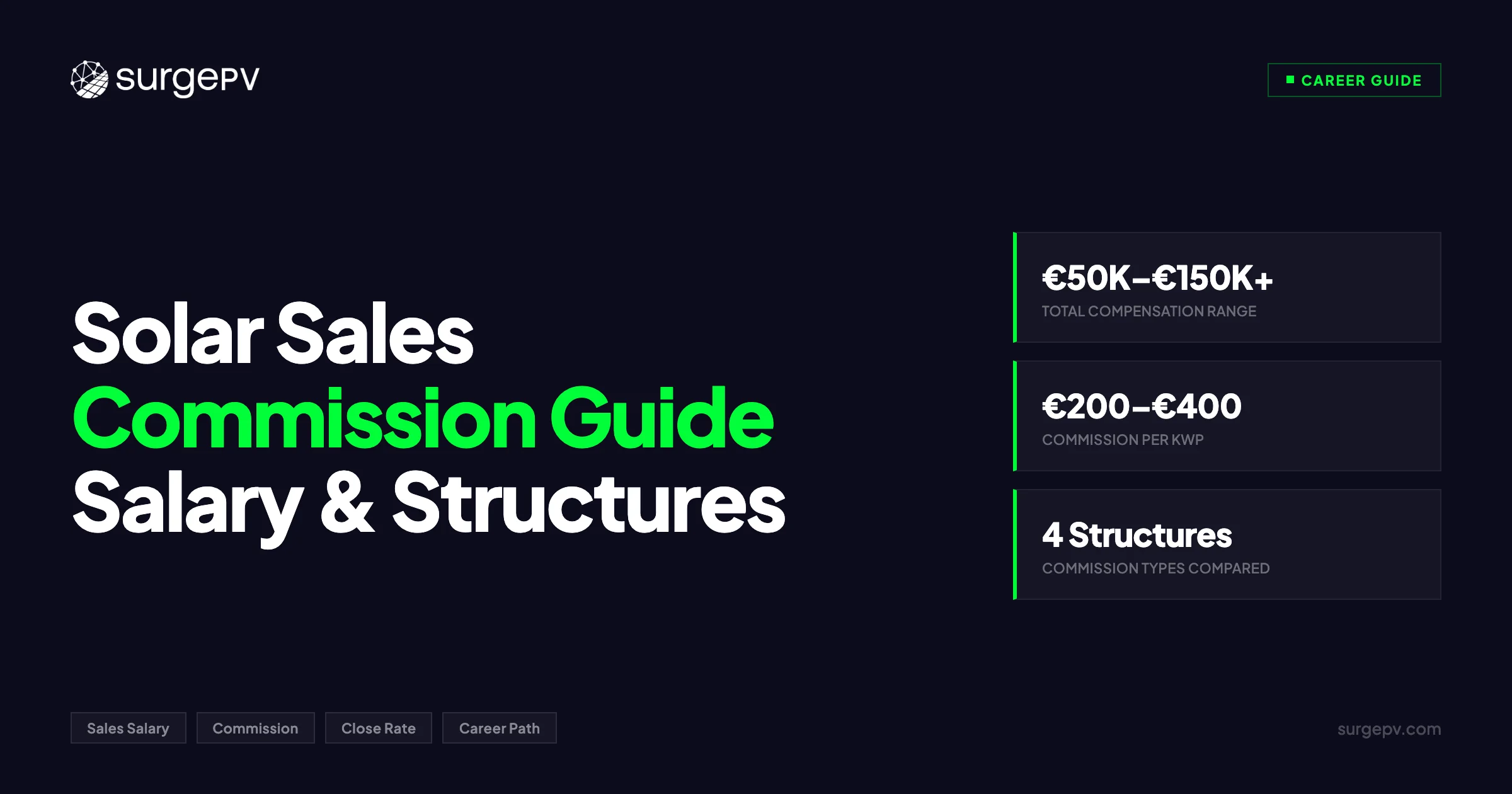 Solar sales is one of the few roles where a first-year rep can out-earn a mid-career engineer. The catch: compensation structures vary wildly, and the difference between a bad deal and a good one can mean €30,000+ per year in lost income.