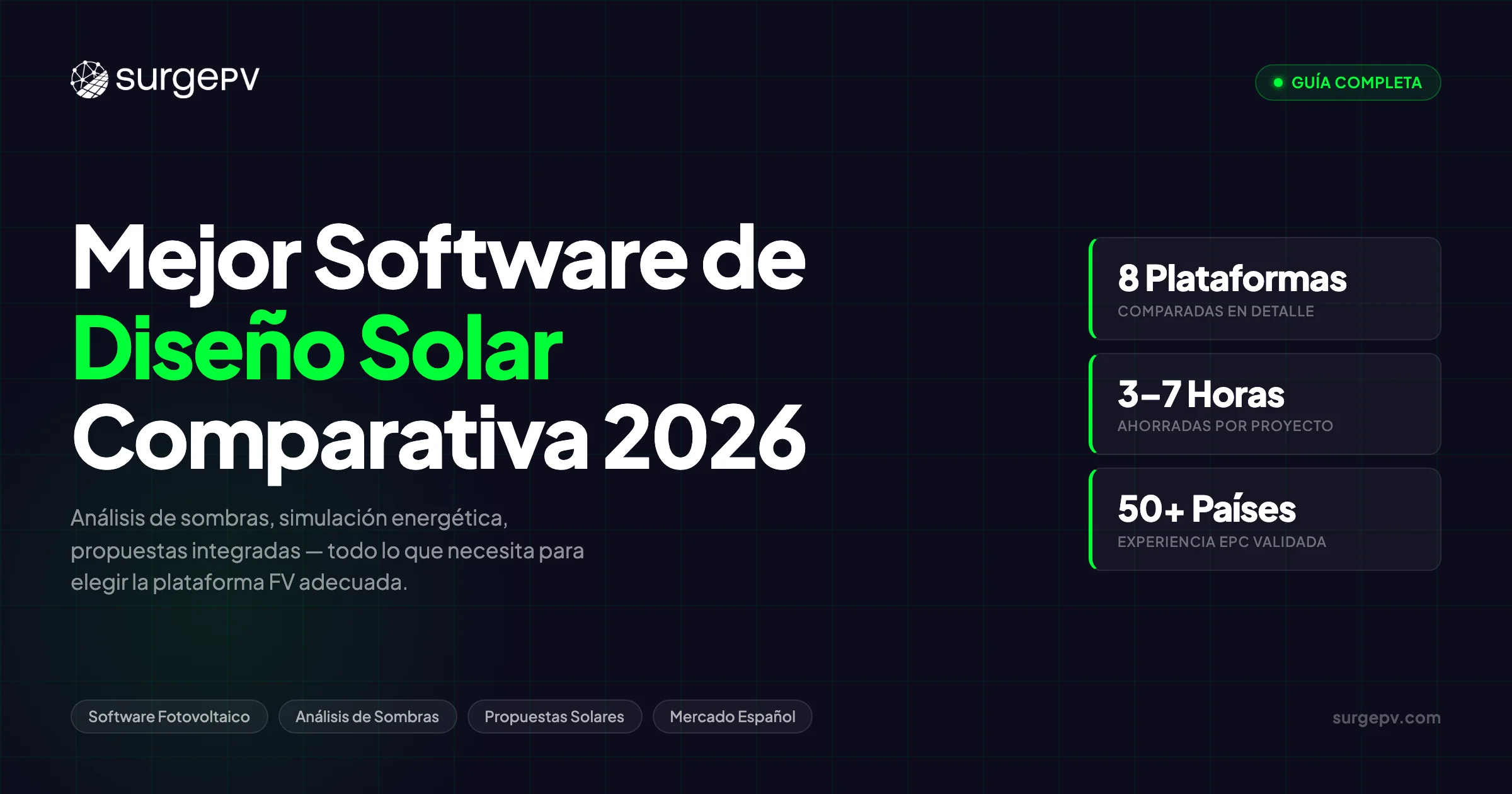Si necesita una sola plataforma para todo su flujo de trabajo —evaluación del emplazamiento, análisis de sombras, diseño de strings, simulación energética y propuestas para clientes— SurgePV es la única plataforma en 2026 que gestiona los cinco aspectos sin requerir una herramienta secundaria ni transferencia manual de datos.