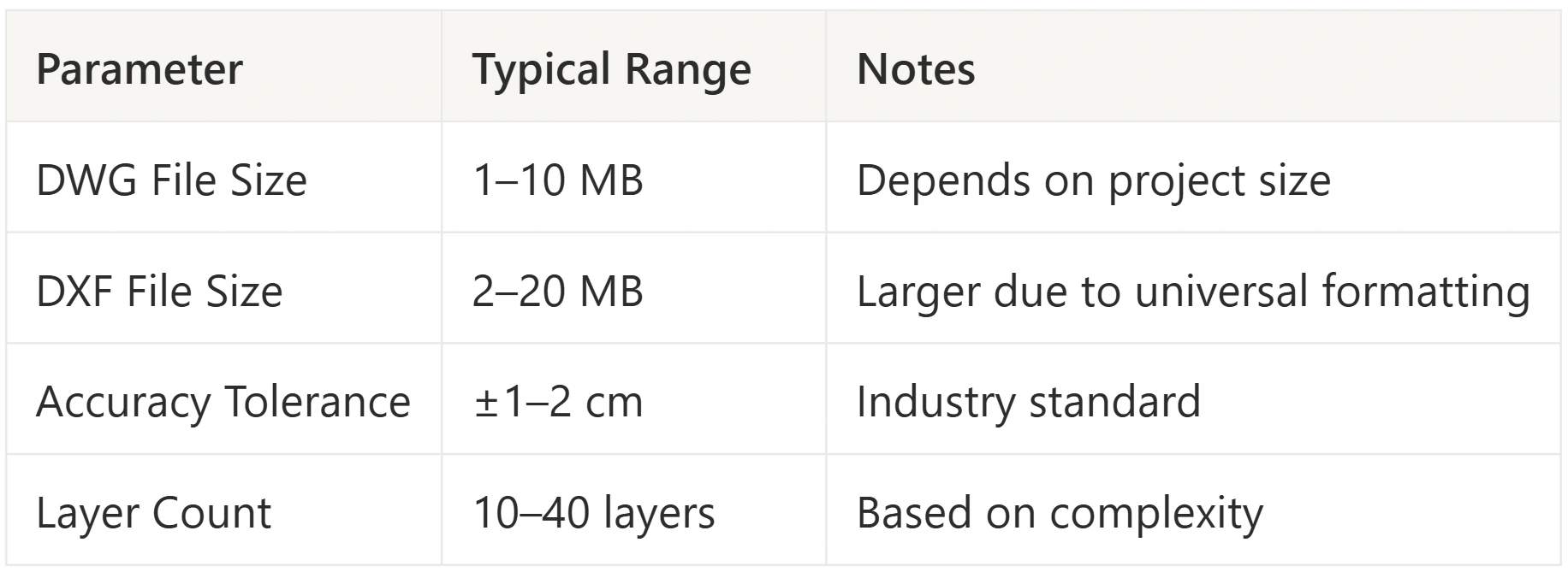 A CAD-exported file typically includes: