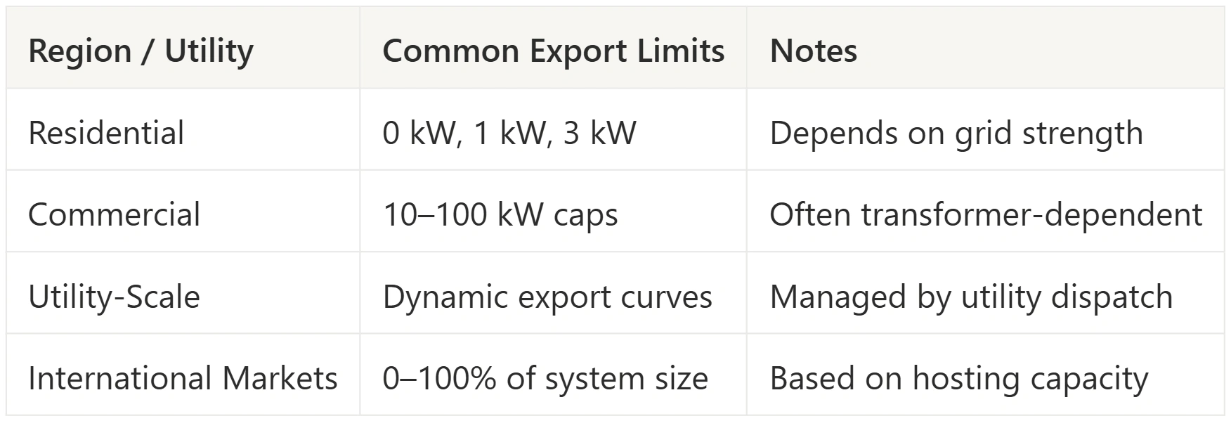 Many regions (Australia, UK, parts of India, certain U.S. utilities) heavily rely on export limiting for PV integration.