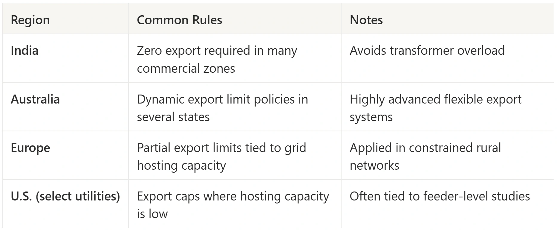 - Export limitation enables solar deployment even in constrained grid environments.