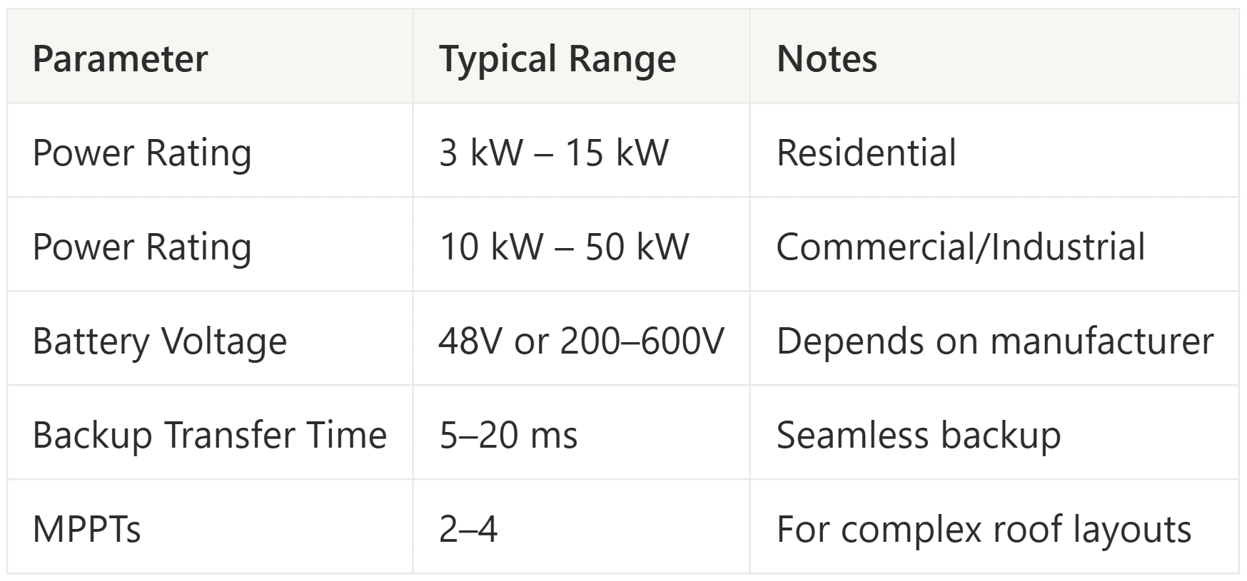 This makes hybrid inverters ideal for solar-plus-storage systems, time-of-use rate optimization, backup energy applications, and homes seeking grid independence.