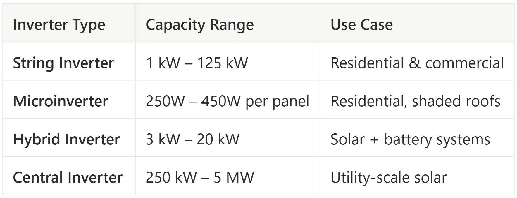 - Inverters convert DC → AC, enabling solar energy to power buildings and feed the grid.