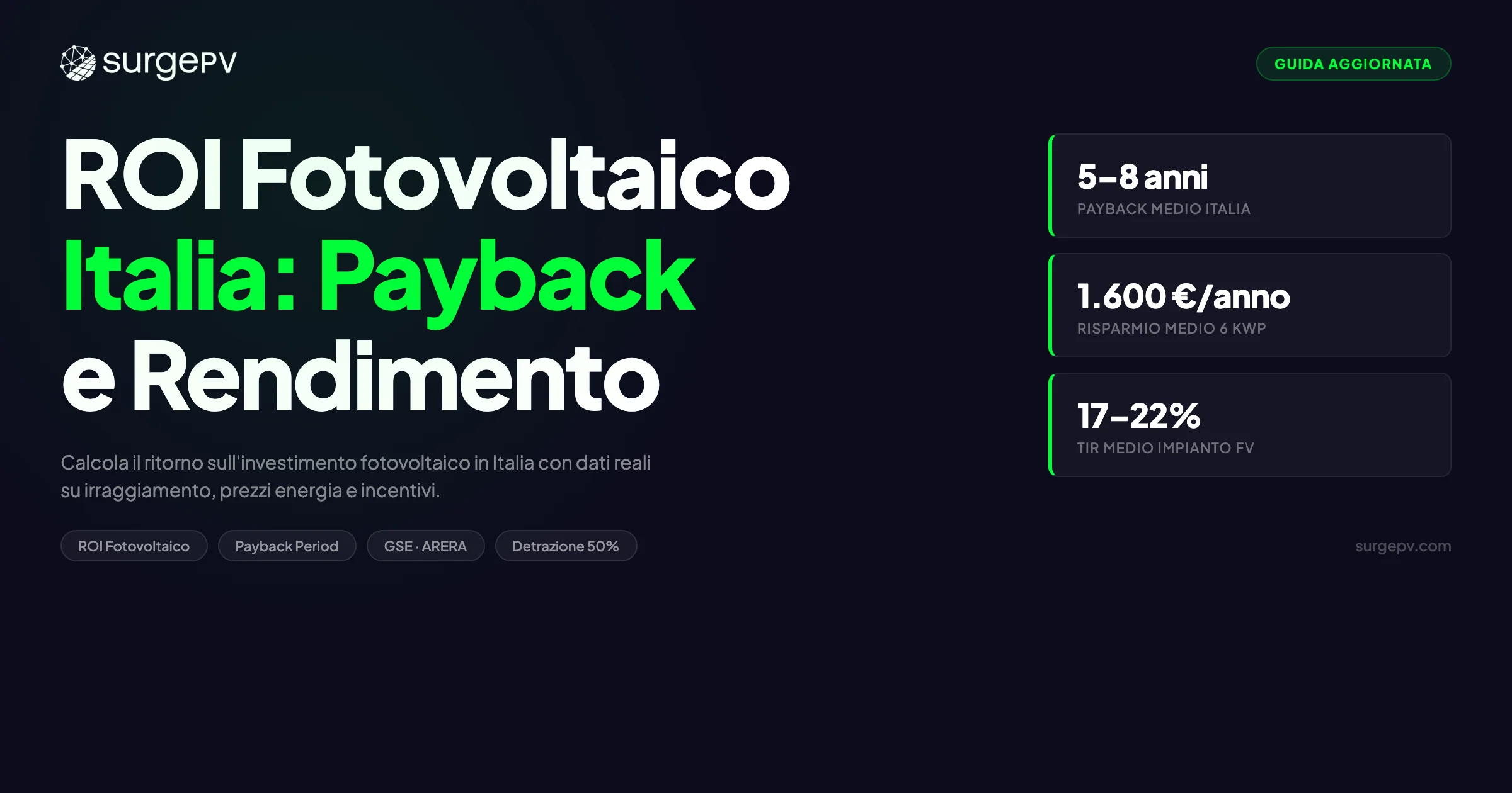 TL;DR — ROI Fotovoltaico Italia 2026