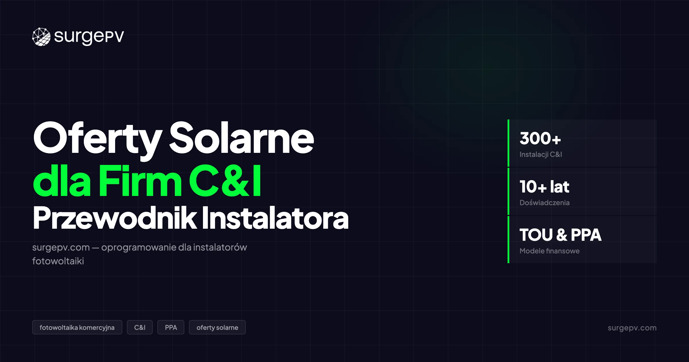 Oferty fotowoltaiczne dla firm wymagają modelowania opłat za szczytowe zapotrzebowanie, analizy taryf TOU, porównania wielu struktur finansowania i dokumentacji na poziomie korporacyjnym, której narzędzia rezydencjalne nie są w stanie zapewnić. Dedykowane oprogramowanie do ofert fotowoltaicznych dla firm skraca czas tworzenia oferty o 60–80%, zwiększa wskaźniki konwersji C&I o 20–35% i produkuje modele finansowe, które wytrzymują analizę dyrektora finansowego i działu prawnego. Komercyjny przepływ pracy SurgePV obsługuje złożoność taryf, modelowanie PPA i portfele wieloobiektowe w jednej platformie.
