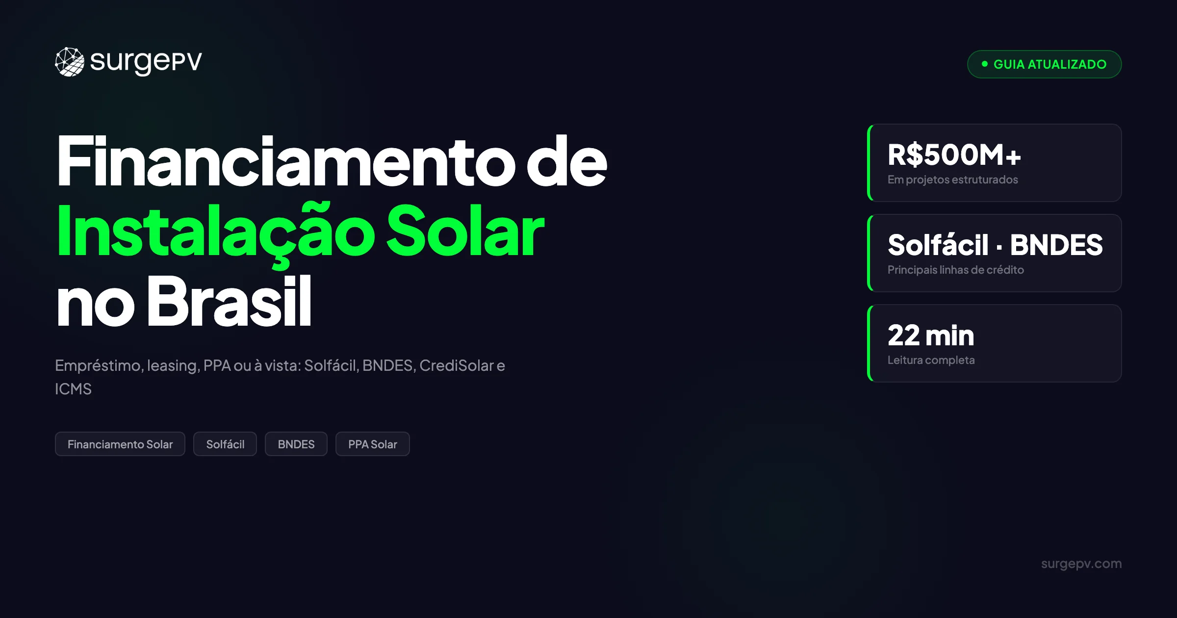 - 8 FAQs incluindo “o que é empréstimo solar?” e “qual a diferença entre leasing e PPA?”